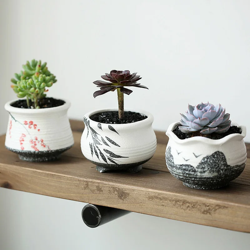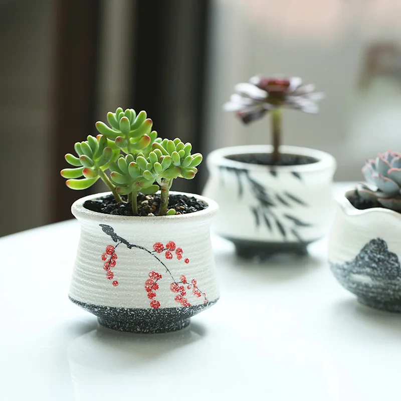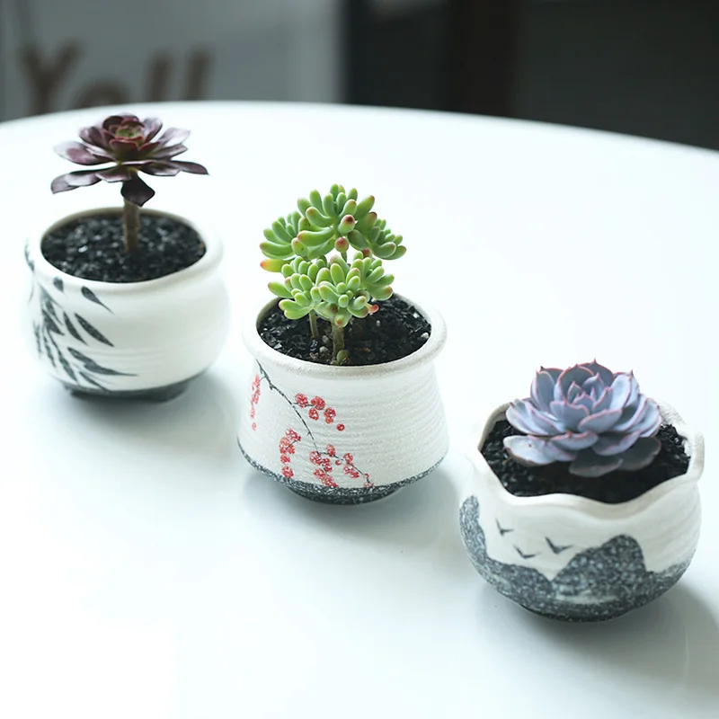 Desktop Garden Flower Pots Creative Flowerpots Classic Pottery Glazed Mini Ceramic Planted Wholesal