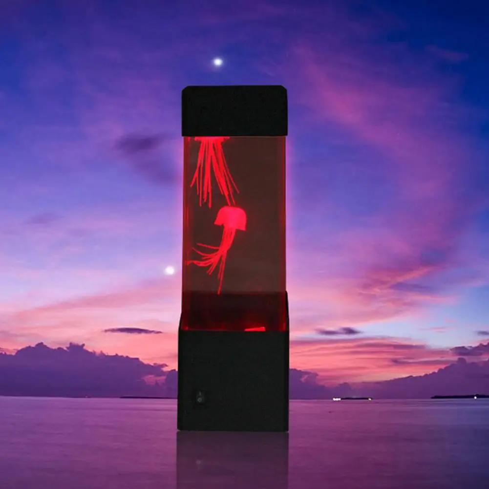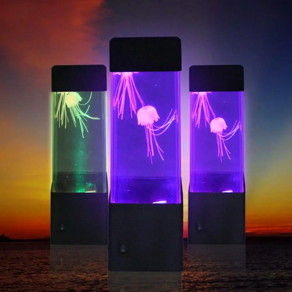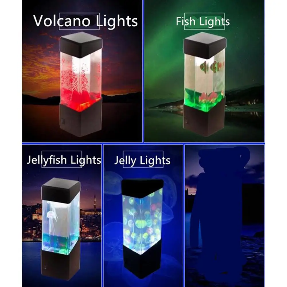 DishyKooker Ecological Mini Fishbowl Aquariums Small LED Seven Color Jellyfish Aquarium Background