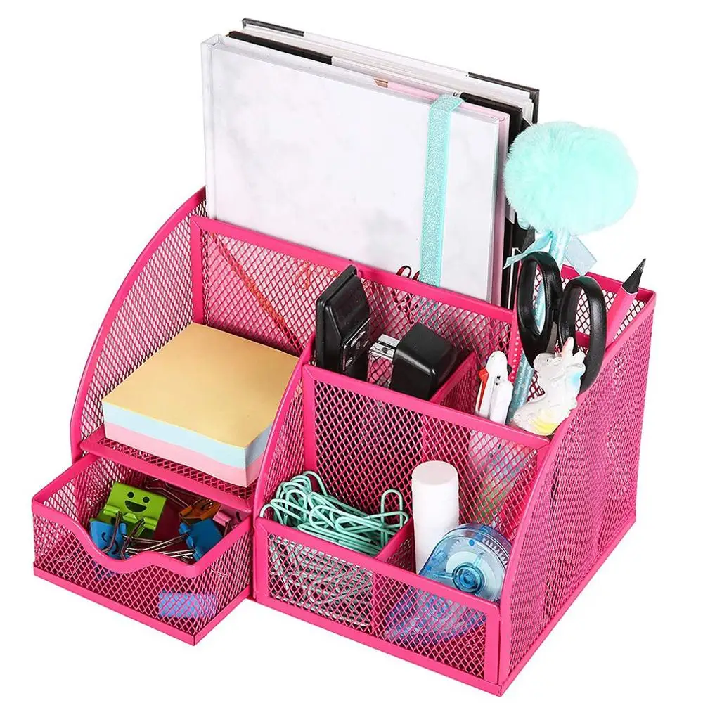 BEST QUALITY Metal Pen Holder Barrel Student Multi-Function Desktop Storage Rack Seven Grid File Data Storage Ra