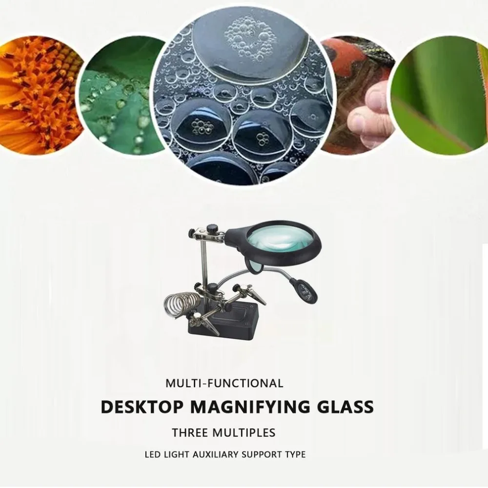 Desktop Magnifiers Multifunctional Clip Magnifying Tool With LED Light Electric Iron Auxiliary Stan