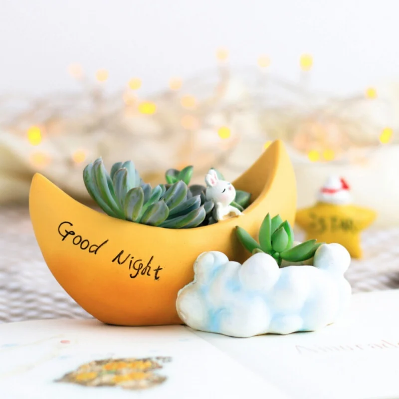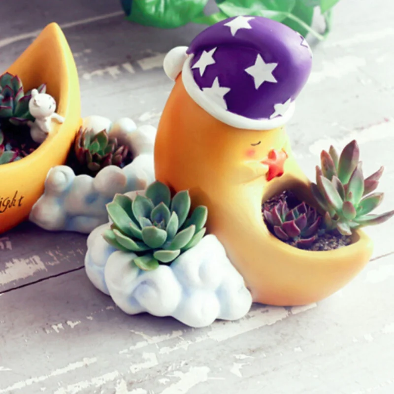 BEST QUALITY Moon Shaped Flower Pot Decorative Stand Resin Container Plant Pot For Gift Home Garden Office Deskt