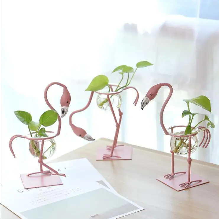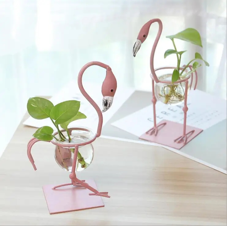 Wrought iron flamingo hydroponics glass vase creative home living room desktop decorative ornaments