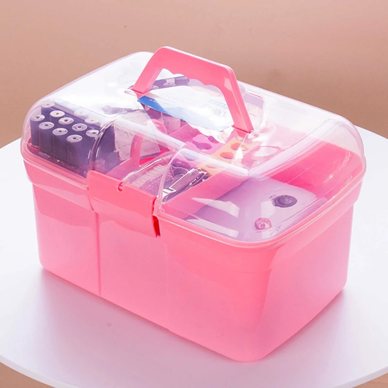 Hand-held Desktop Storage Box Plastic Makeup Organizer Jewelry Nail Polish Pen Container Manicure T