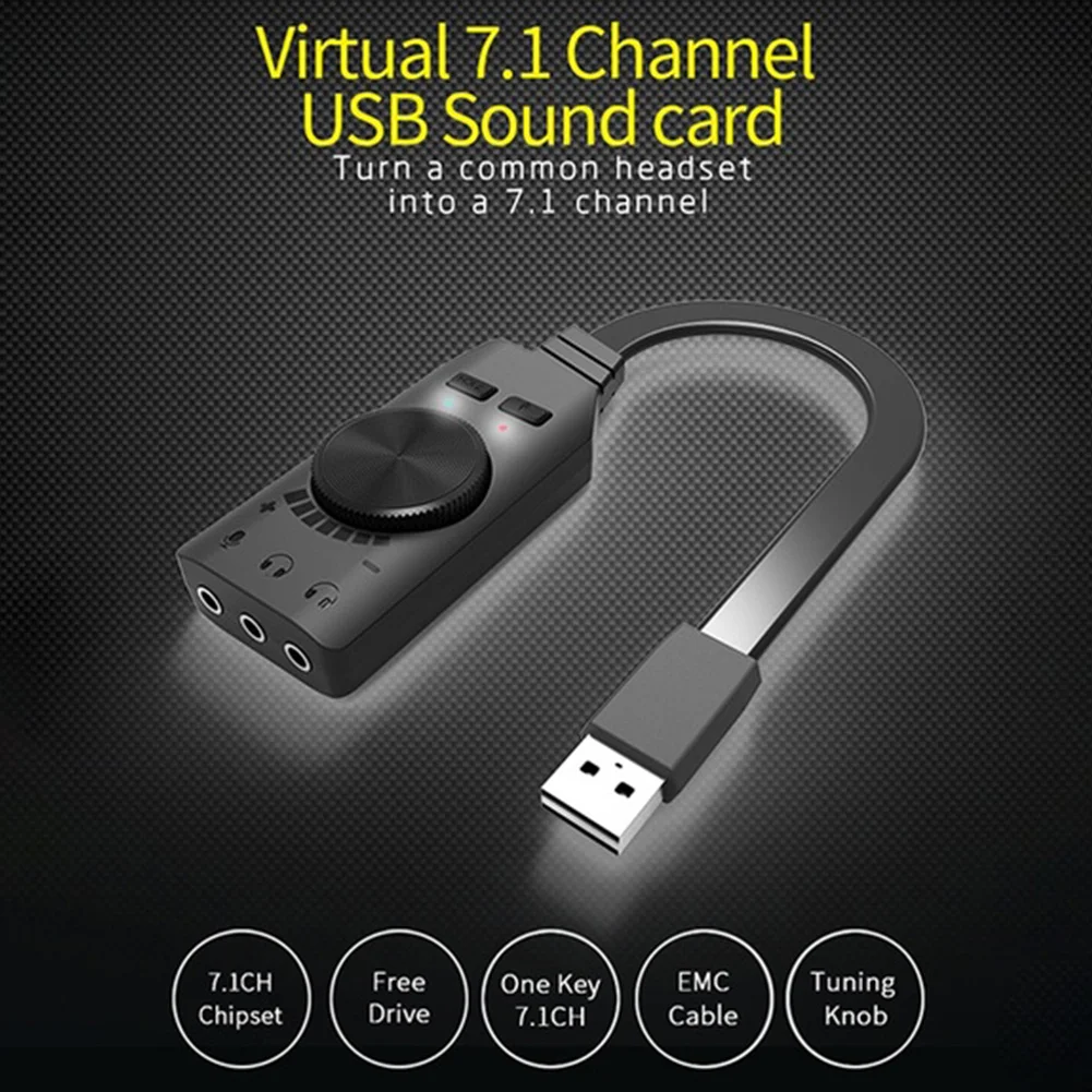 GS3 Converter Virtual 7.1 Channel External USB 3.5mm Headset Black Audio Stereo Sound Card Adapter