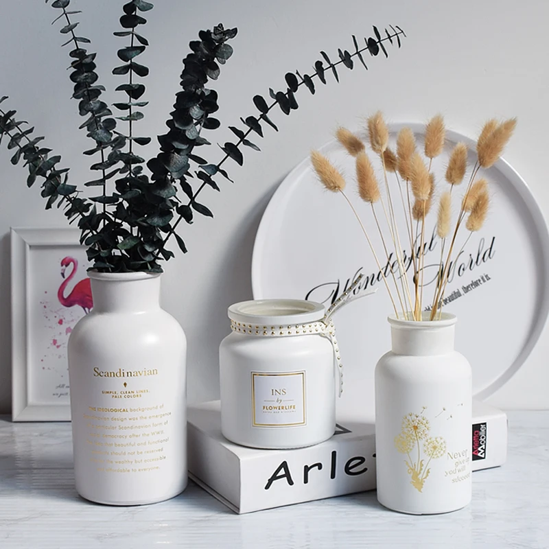 Nordic Glass Vase Creative Black / White Hot Stamping Printing Vase Dried Flowers Inserted Desktop