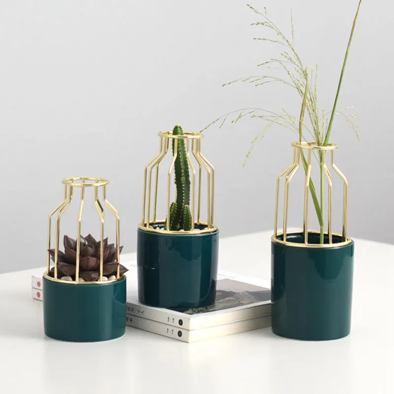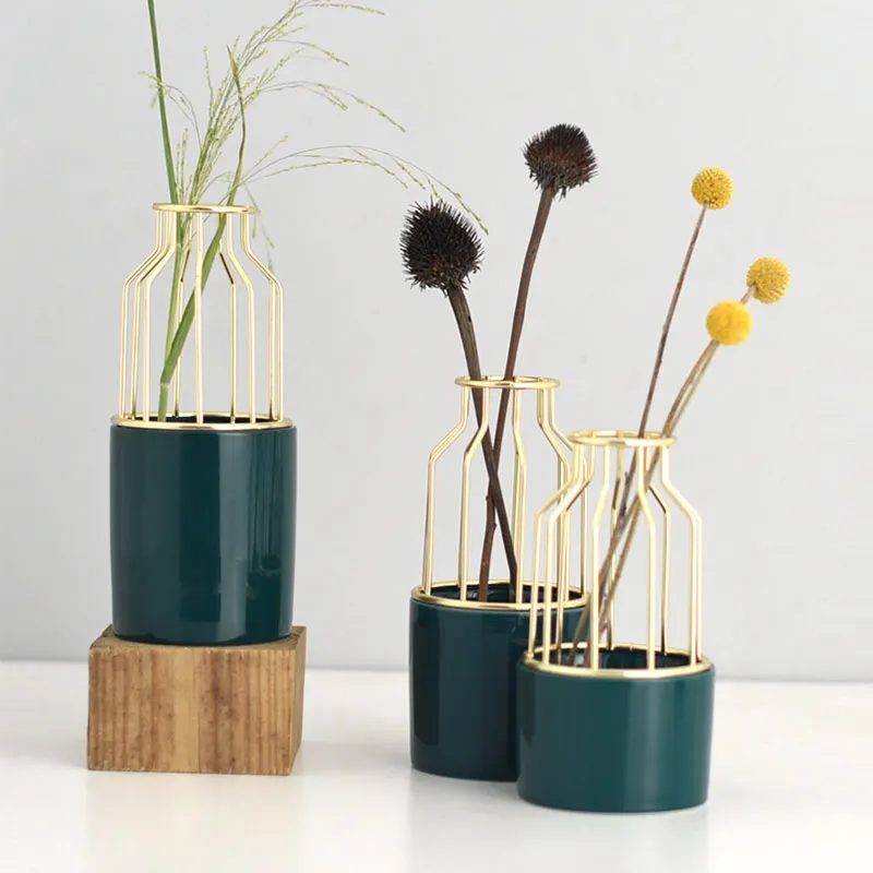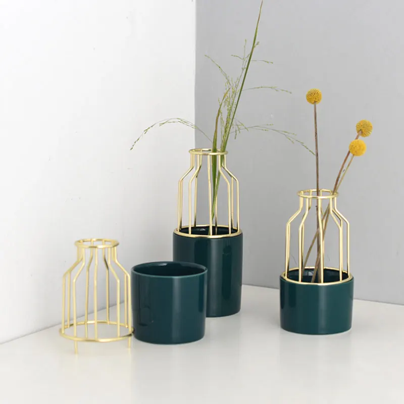 Nordic Home Retro Minii Vase Metal Wrought Iron Flower Vase Ceramic Small Vase Desktop Decoration j