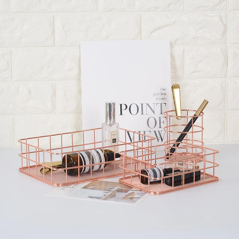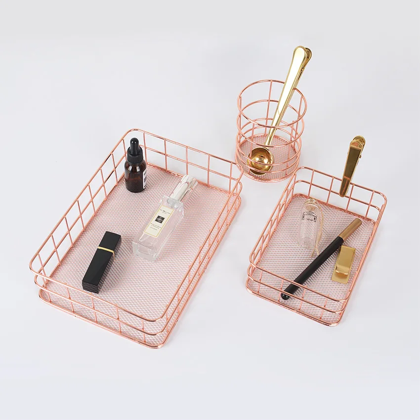 Rose Gold Stainless Steel Iron Storage Basket for Desktop Organizer Clothing Storage Fruit Snacks T