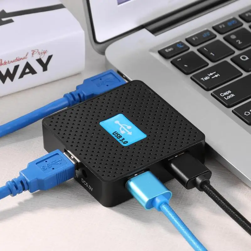 ALLOYSEED 1Pcs Aluminum External 4 Port USB 3.0 Hub High Speed Adapter Splitter Converter for PC La